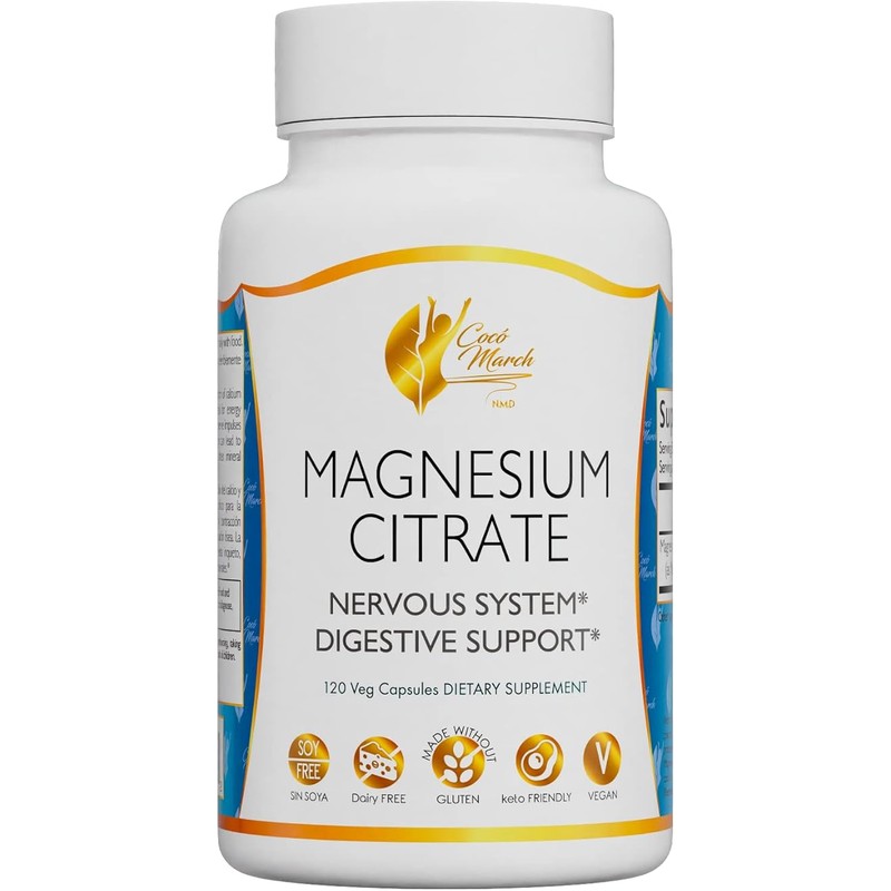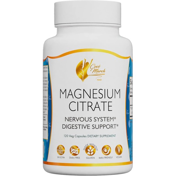 Cocó March N.M.D Magnesium Citrate - Relaxation- Sleep - Nervous & Digestive System Support, Gluten Free, Soy Free, Dairy Free, Keto Friendly, Vegan, 800 mg per Serving, 120 Capsules