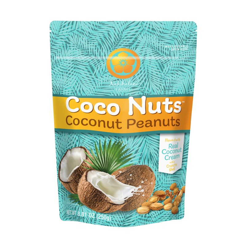 Coco Nuts Coconut Peanuts by Nakihalani Farms (8.81 oz) | Sweet & Salty Snack for Adults & Kids | Non-GMO, Plant-based, Vegan | Peanuts Coated in Coconut Cream with Crunchy Shell | Resealable Bag