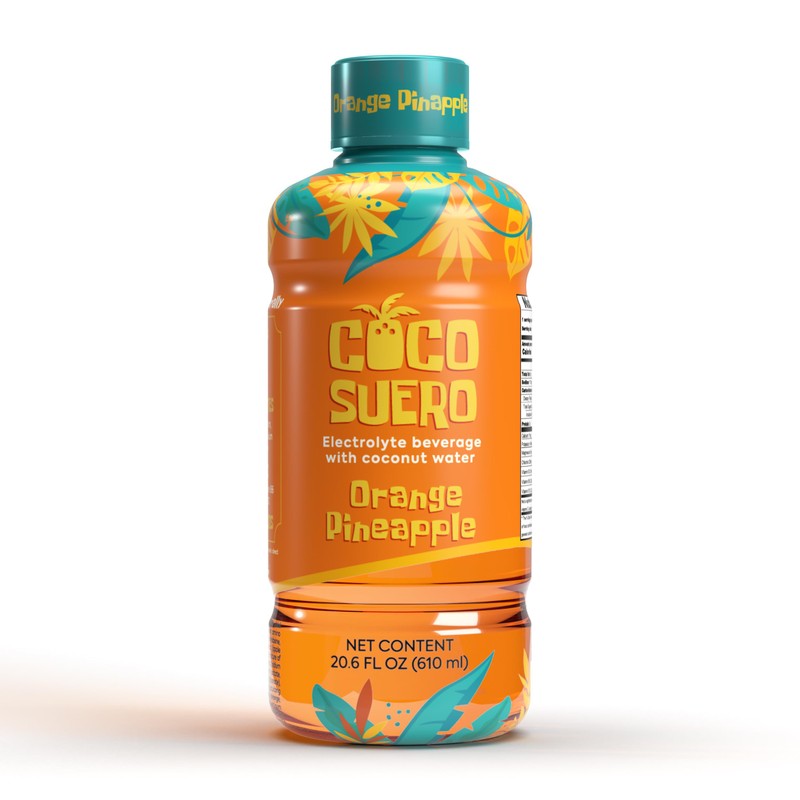 Coco Suero Electrolyte Coconut Water – 12-Pack | 100 Calories, Fat-Free, Packed with B3, B6, B12 for Energy & Hydration | No Artificial Flavors | Amino Acids | Sweetened with Dextrose | (20.2 Fl Oz, Orange Pineapple)