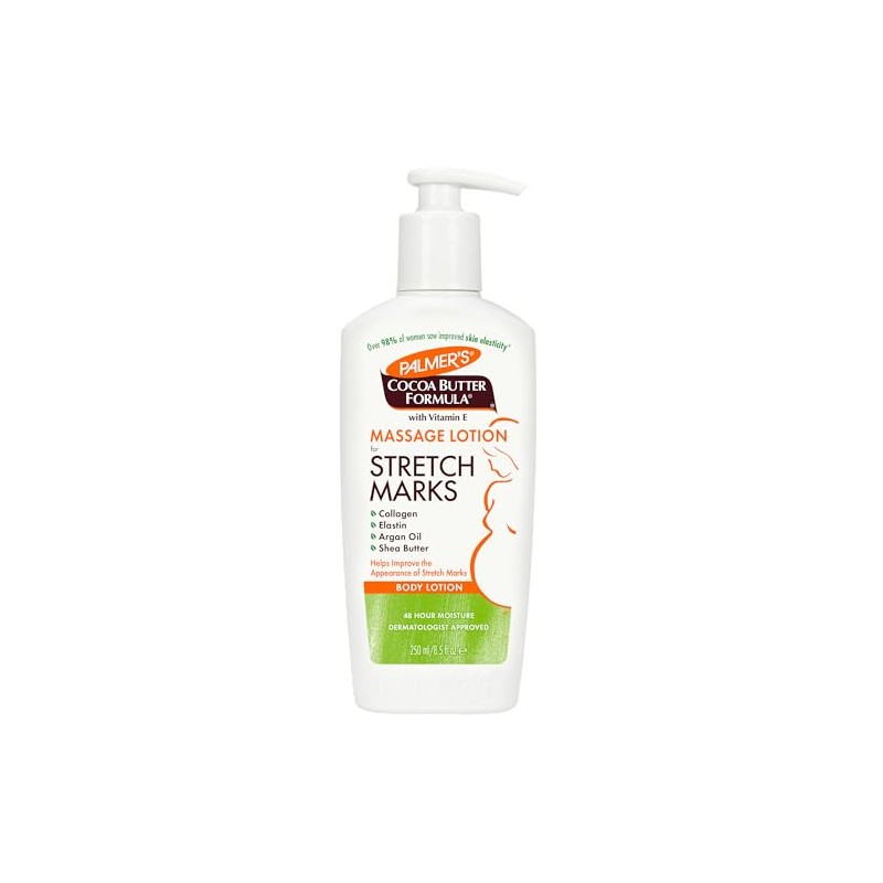Tamaño:Paquete de 1 Palmer Loción de masaje para estrías con fórmula de la manteca de cacao – 8,5 oz Palmer Loción de masaje para estrías con fórmula de la manteca de cacao ayuda a prevenir y tratar con estrías. Combina manteca de cacao, vitamina E, colágeno y elastina que lubrica la piel, mientras que mantiene la elasticidad y la humedad natural de la piel. ¿Por qué te encantará? Características Crema no grasaSuaviza y alivia la piel estirada que se produce debido al embarazoSuaviza las estrías que se producen con la pérdida de pesoAyuda a aligerar estríasAyuda a mejorar la elasticidad de estiramiento de la pielHipoalergénicaSin parabenos.libre de ftalatosProbada dermatológicamenteFabricada en Estados Unidos.