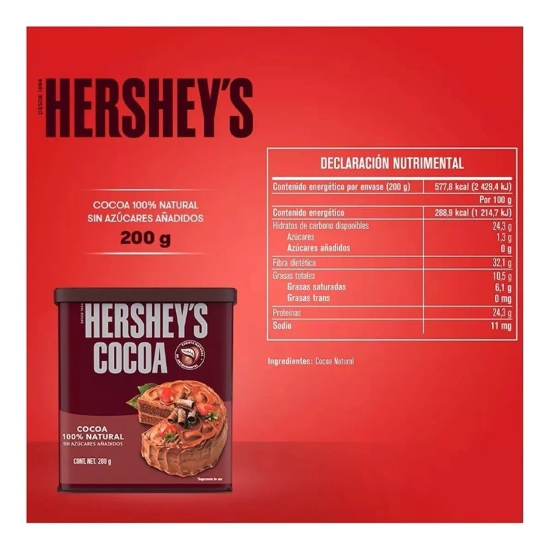 La Cocoa Hershey's Lata 200 g es el ingrediente ideal para llevar tus postres y recetas al siguiente nivel. Con esta cocoa 100% natural, podrás preparar una variedad de delicias como pasteles, galletas, helados, malteadas, cocoa caliente, e incluso usarla para decorar tus creaciones.