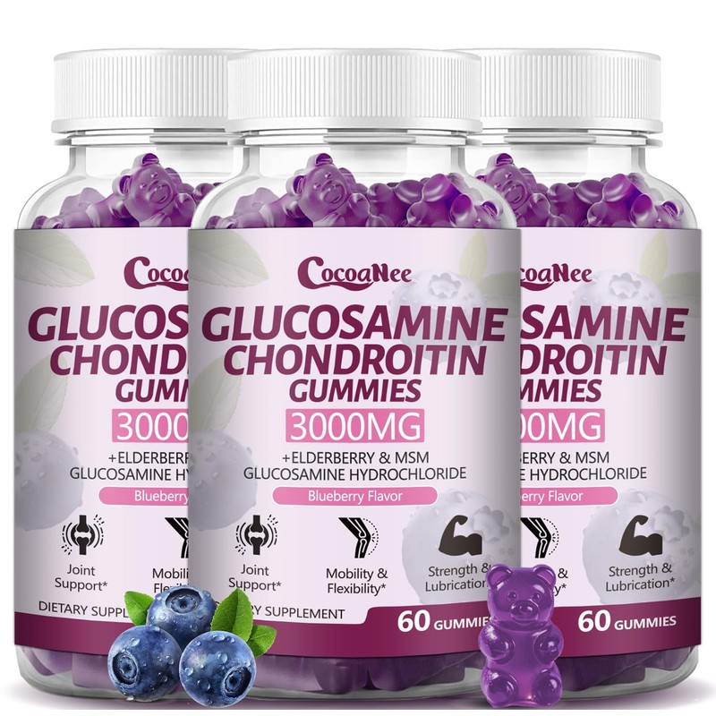 CocoaNee 3 Packs 3000MG Glucosamine Chondroitin Gummies, Extra Strength Joint Support Supplement with MSM & Elderberry, Flexibility, Antioxidant Immune Support Gummy for Adults, Men & Women 180Cts