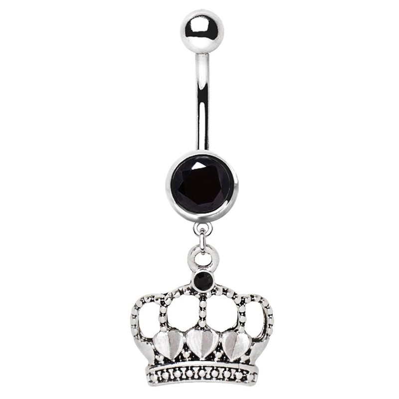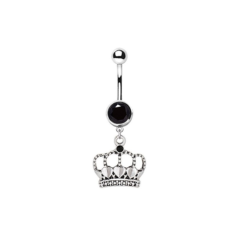 Cocobul Body Jewelry 316L Navel Ring with Antique Style Heart Crown