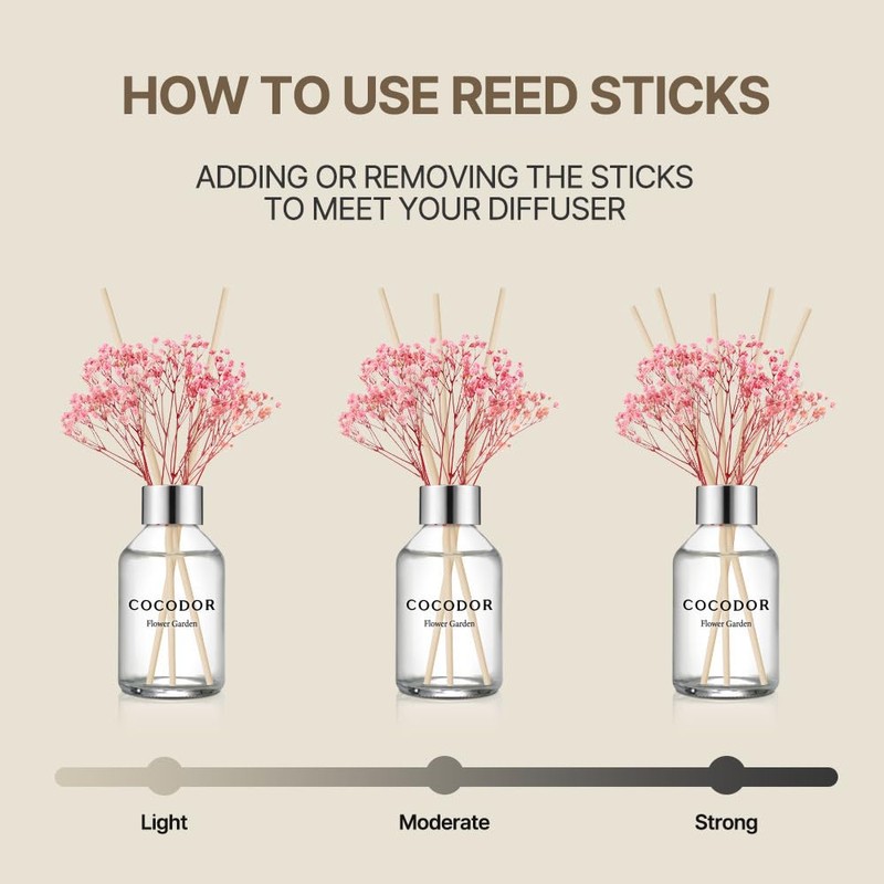 - Easy Scent Control And Long-Lasting Fragrance - You can choose to add or remove the number of reed sticks to match your taste. It takes 1 or 2 days for the fabric sticks to soak in the scent. When the fragrance weakens, simply turn the reed sticks upside down or replace them with new ones.