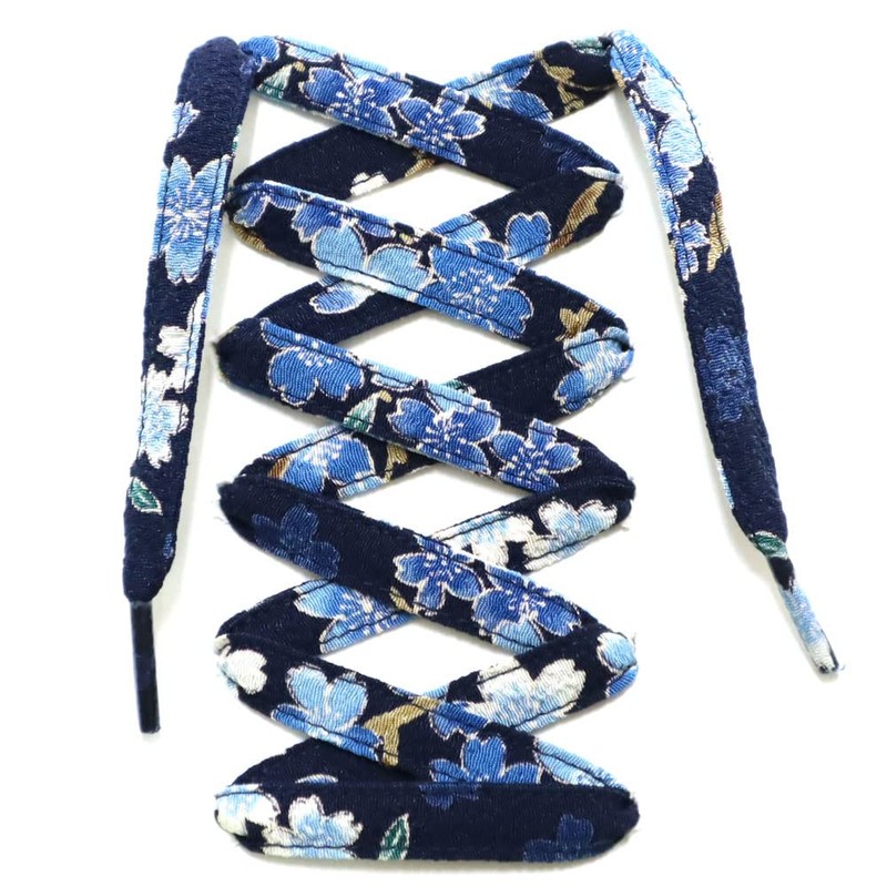 CocoLuck Crepe Shoelaces with Japanese Patterns, 46.1 inches (117 cm) - blue