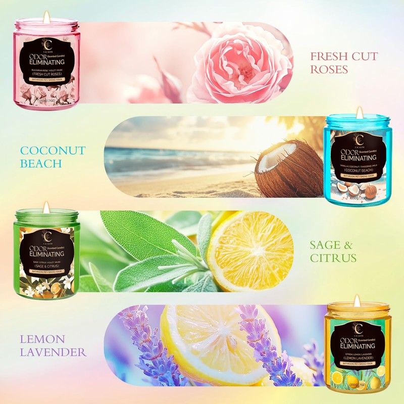 • Odor Eliminating: Our Coconut Beach Living Room Candles not only delivers a refreshing coconut and sea breeze scent, but also works to neutralise odours and create a pristine beach-like environment. Whether it's kitchen fumes, pet odours or damp and musty smells, this candle can easily deal with them and return the air to its natural freshness