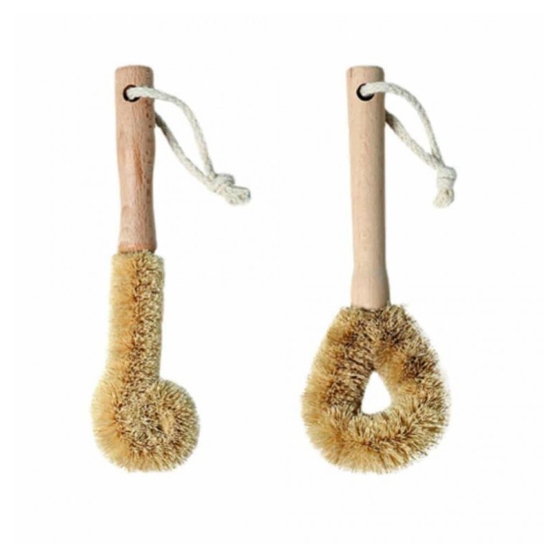 Coconut Bristle Pot Scrubber Dishwashing Brush Cup Cleaning Brush 2ea