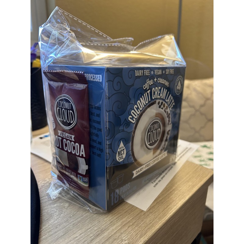 COCONUT CLOUD: Coconut Cream Vegan Latte K-Cup & Hot Cocoa Sticks | All-in-One Coffee w/MCT Oil and Creamer | Gluten Free, Soy Free, Corn Free, & Non GMO, (18 Recyclable Pods + Hot Choolate Stick Sample Pack)