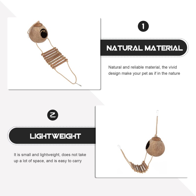 -The unique coconut shell design offers a naturalistic look, making it visually appealing and enhancing the overall aesthetic of your pet's habitat.