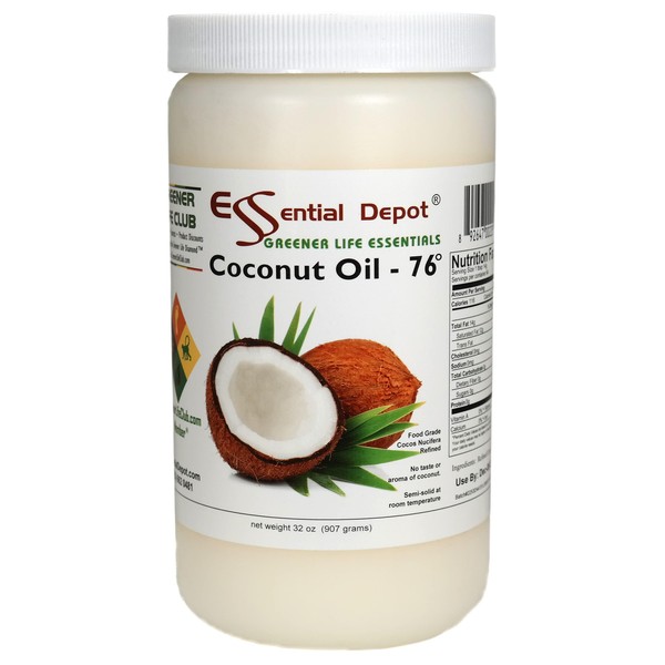 - COCONUT OIL - 76 F - 32 oz (2 lbs) - Food Safe - Shipped in microwavable Wide Mouth HDPE Quart Safety Sealed Container with Resealable Cap.