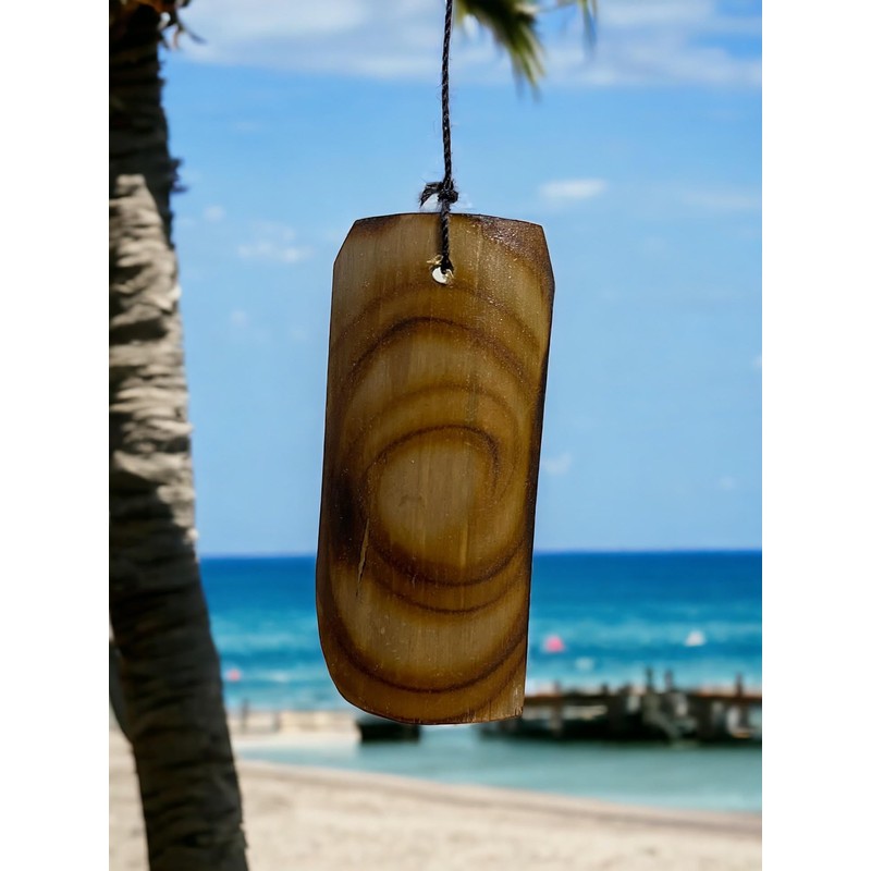 This exquisite tropical coconut/palm tree wind chime serves as a captivating piece of decor, perfect for adding a serene and natural ambiance to any setting. Crafted with meticulous attention to detail, it features a beautifully designed 10” tall wooden representation of a coconut or palm tree, exuding an essence of tropical charm. Dangling beneath are bamboo chimes, each up to 12” in length, adorned with unique spiral stained designs that enhance their visual appeal. The bamboo chimes are designed to produce deep, relaxing, and calming tones. The combination of the wooden tree and bamboo chimes captures the spirit of the tropics, making it an ideal accessory for creating a peaceful retreat in your outdoor or indoor space.