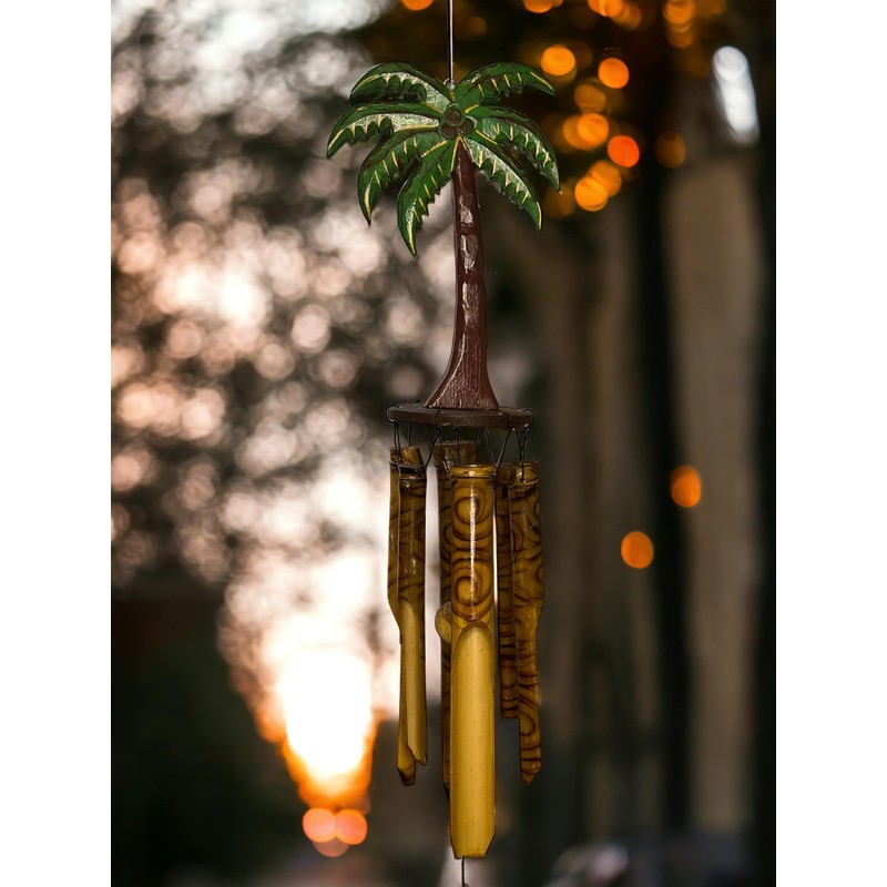 Coconut/Palm Tree Windchime – Large Rustic Tropical Bamboo & Wood with Unique...