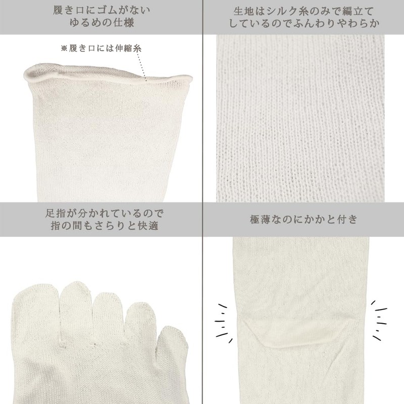 Cocoon Fit Silk, Wear it inside your favorite socks for warmth, 1st layer of cold socks, very thin silk five-toe socks (S) 99% silk, Made in Japan