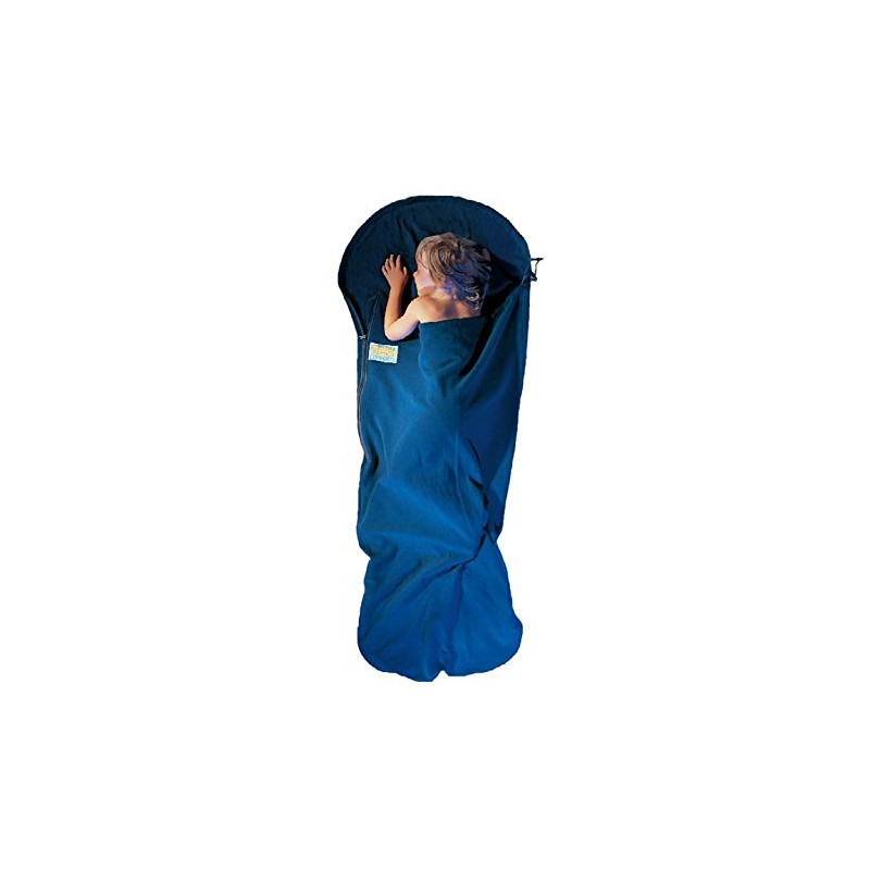 Soft and warm fleece sleeping bag for children up to 155 cm tall. It comes with a No.5 YKK zipper and a drawstring hood. Ideal for summer camp and slumber parties.