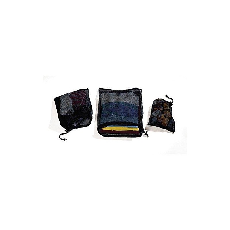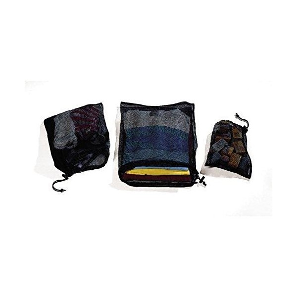 Get organized for travel and outdoor activities with this set of 3 nylon mesh ditty bags for all your smaller items. Durable nylon mesh makes it easy to find the item you are looking for. Drawstring closure with cordlock secures items inside each bag.
