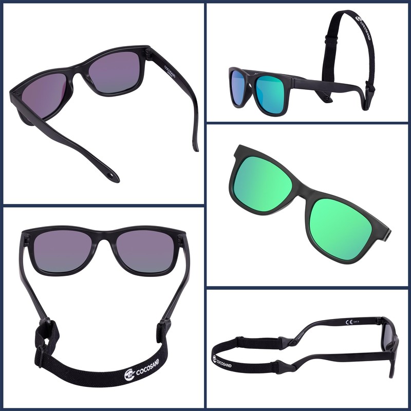 COCOSAND Flexible Baby Sunglasses with Strap Polarized UV Protection for Toddlers Infant Kids Newborn Boy Gril, Matte Black with Green Lens