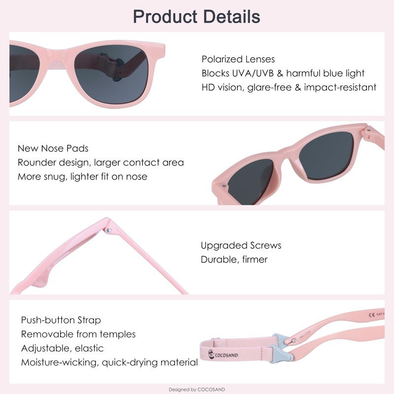 COCOSAND Toddler Baby Sunglasses with Strap Polarized Flexible Square Frame U...
