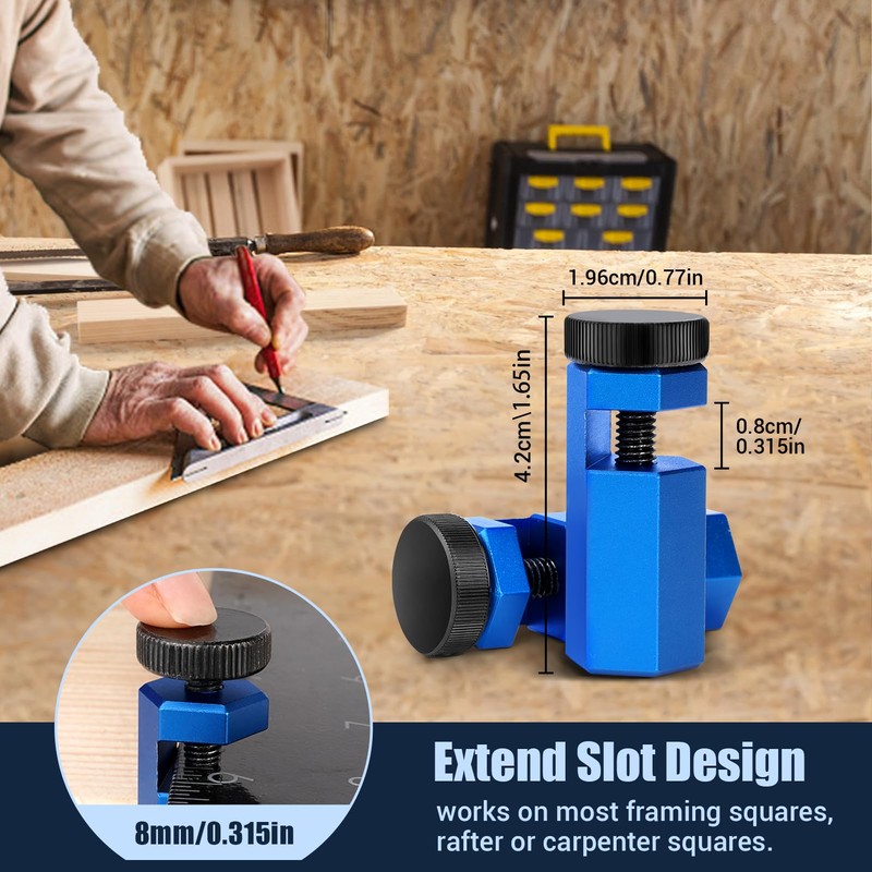 - Perfect Design: The hexagonal plane design more suitable for the edge than circle,The taller body allowing the ruler to be completely perpendicular to the material, extremely stable and accurate clamping of the workpiece, stair gauges come with a black oxide steel large thumbscrew, non-slip and durable, easy to grip and tighten onto any rafter square even when wearing gloves, the Anti-lost holder make you easy to carry