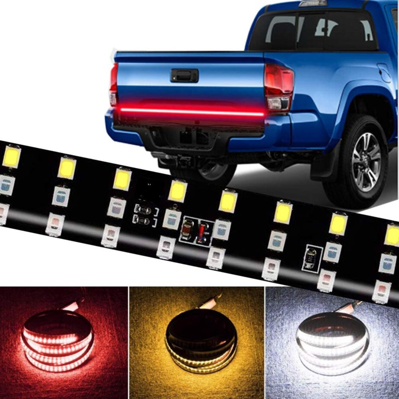 CoCsmart LED Tailgate Light Bar Triple Row, 60 Inch Tail Light Bar for Pickup Trailer SUV RV Van,Sequential Red Brake White Reverse Amber Turn Signal Strobe Light,No Drill Install