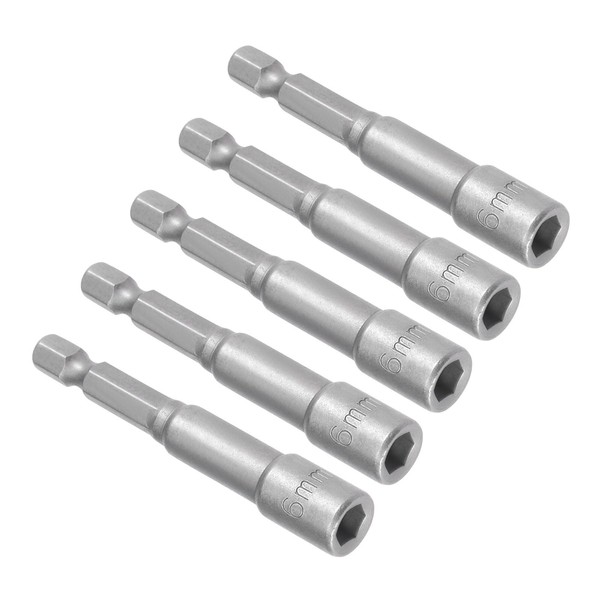 CoCud 5pcs Driver Drill Bit 1/4" Hex Shank 6mm Socket 65mm Chrome Steel Magnetic