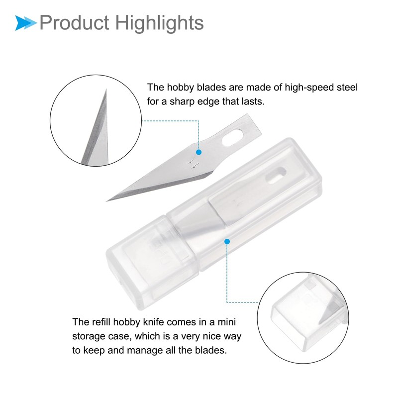--- The refill hobby knife comes in a mini storage case, which is a very nice way to keep and manage all the blades.