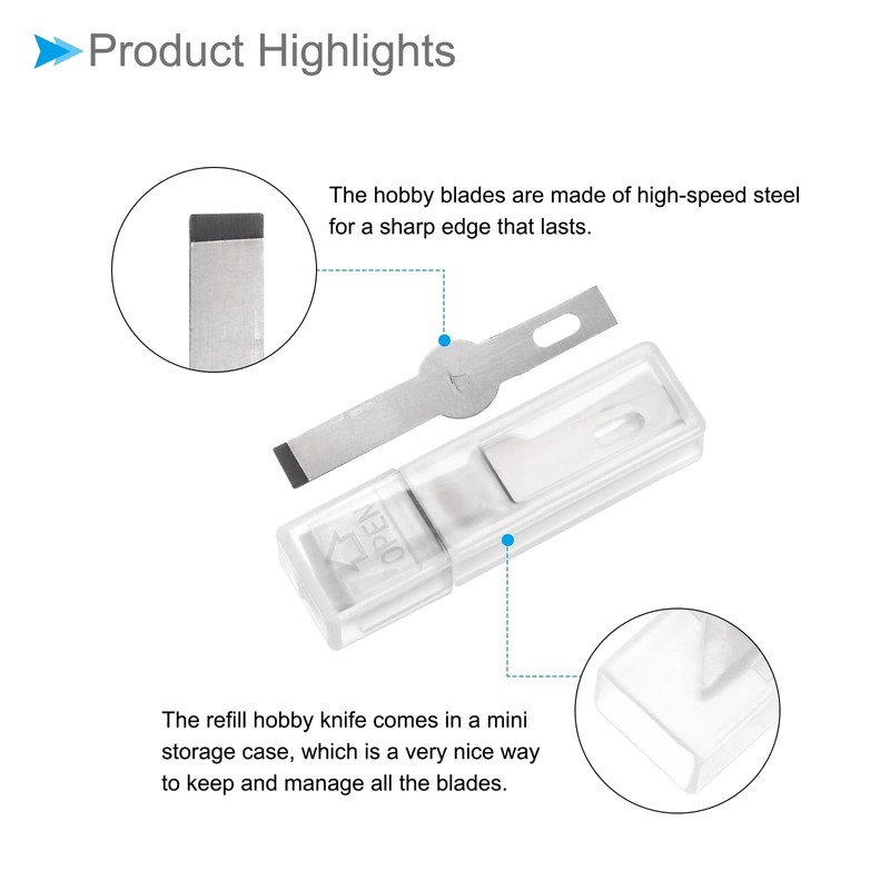 --- The refill hobby knife comes in a mini storage case, which is a very nice way to keep and manage all the blades.