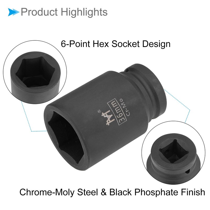 - ★ DEEP IMPACT SOCKET SIZE --- Socket Size: 36mm, Drive Size: 3/4", Total Length: 78mm / 3.07"