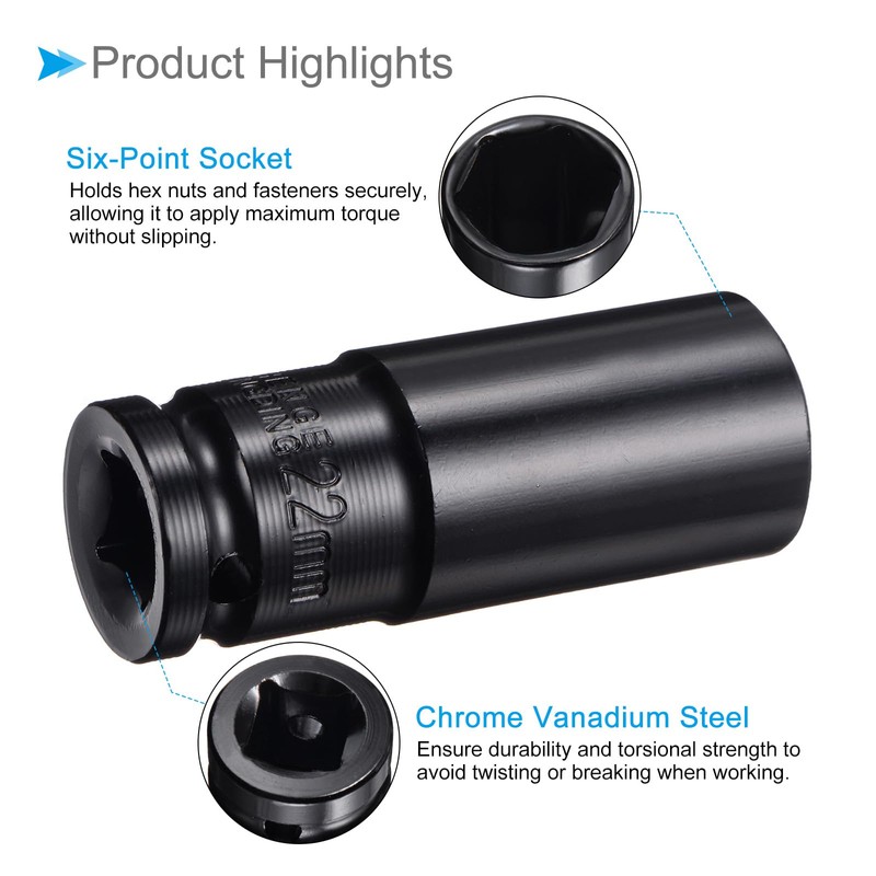 --- Made of chrome vanadium steel to ensure durability and torsional strength to avoid twisting or breaking when working with high torque.
