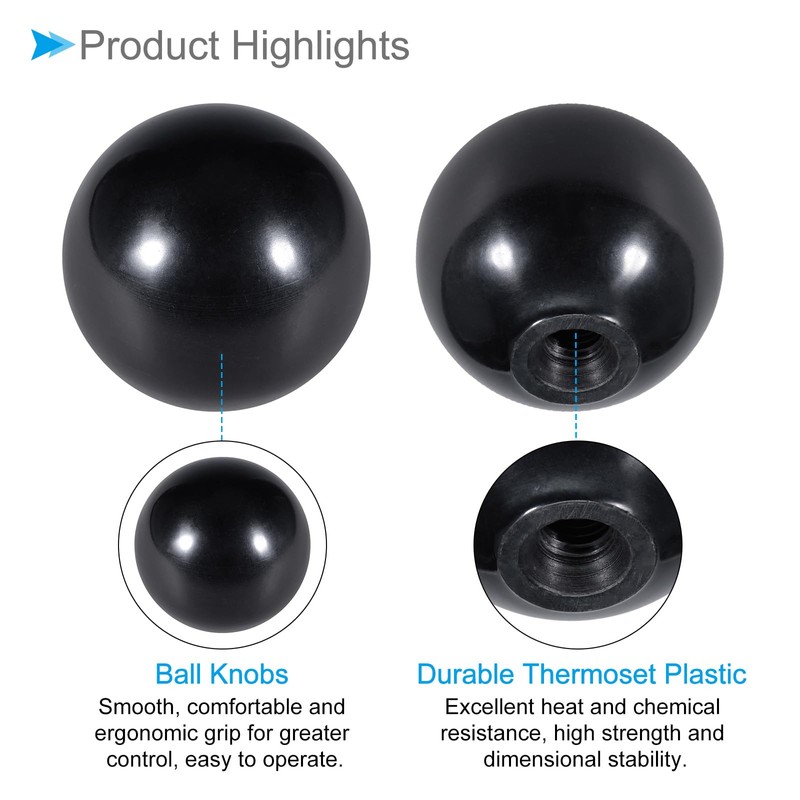 --- The ball knobs allow a smooth, comfortable and ergonomically shaped handle for better control and facilitate quick adjustment. The knobs are made of durable thermoset plastic and have excellent resistance to heat and chemicals as well as high strength and dimensional stability. Thermoset ball knobs are highly wear-resistant and are perfect for applications that require frequent use and are exposed to harsh environments.