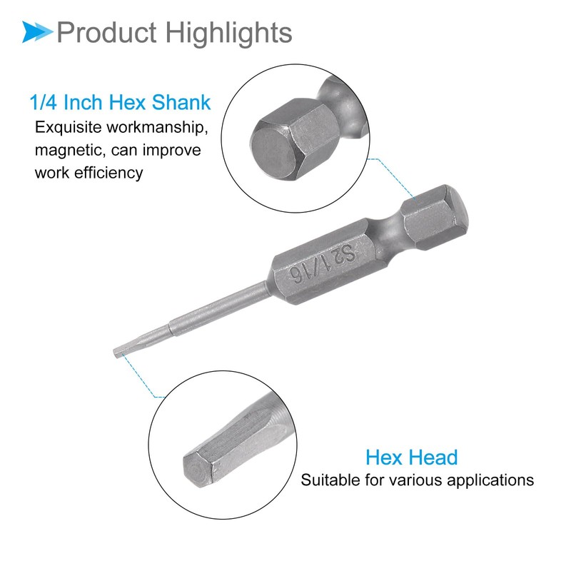- ★ Hex Screwdriver Bits Size --- Hexagon Head Size: 1/16", Hex Shank Size: 1/4", Total Length: 50mm / 2". You will receive 1pcs hex screwdriver bits in one package,