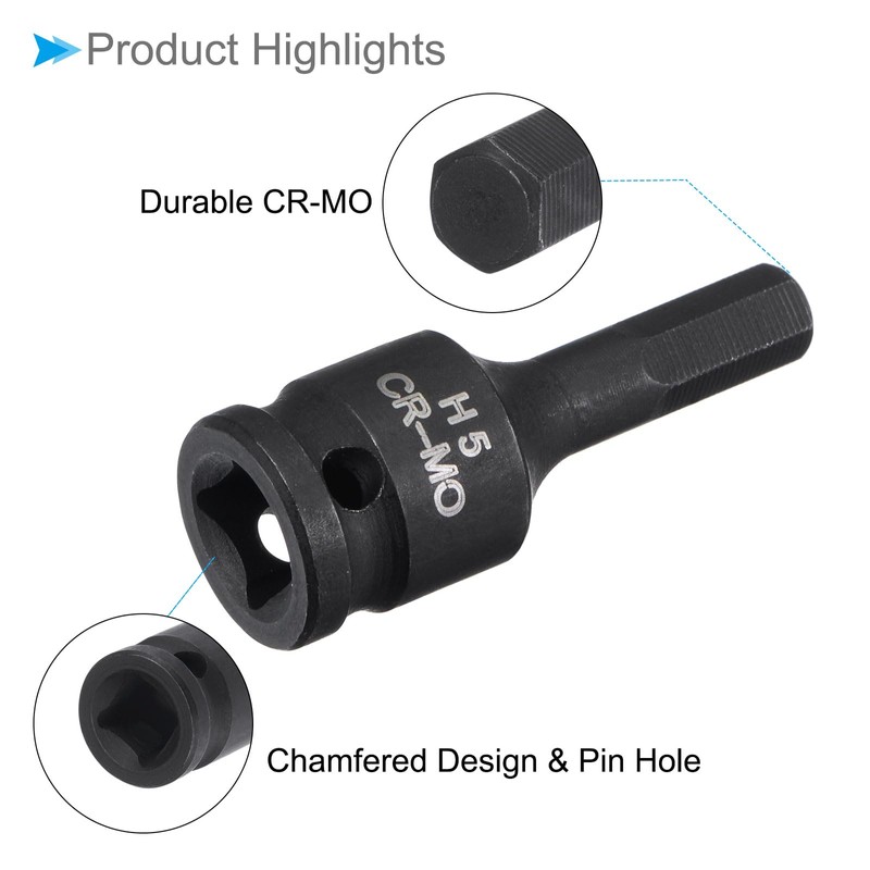 - ★ Chamfered Design & Pin Hole --- Chamfered end inserts smoothly into the fastener head, reducing wear. The separate pinhole-style base design adds extra security by placing a locking pin for added stability when applying strong torque movements.