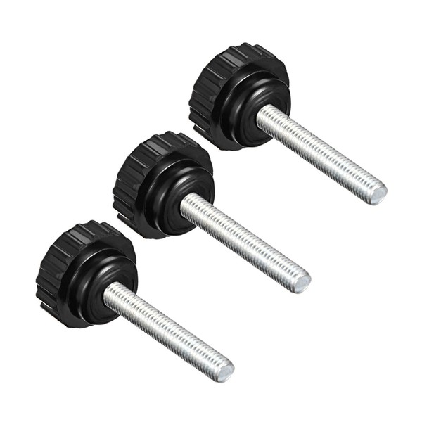 CoCud Knurling Clamp Knob M5 x 30mm Male Thread 21mm Head Thermoset Plastic Thumbscrew Grip Bolt Knob Black for Use in Lathe Machines 3 Pcs