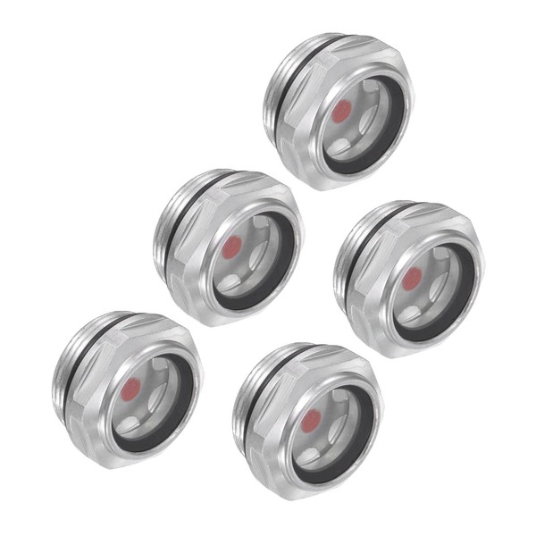 CoCud Oil Sight Glass for Air Compressor | M30 x 1.5 mm Thread | Aluminium Hexagonal Oil Level Indicator Window - (Applications: for Gear Fittings), Pack of 5
