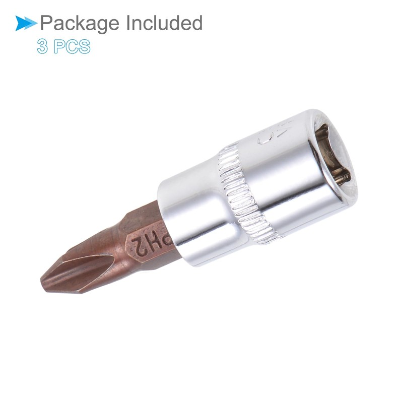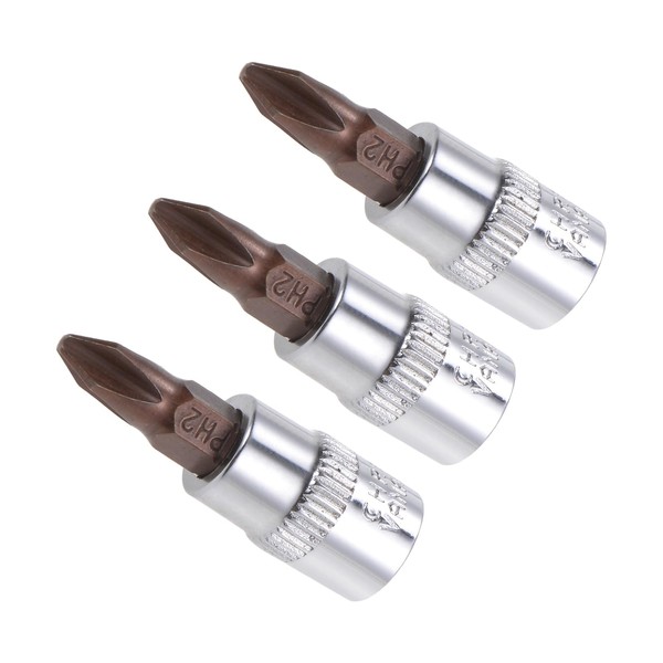 CoCud Phillips Bit Socket, Metric PH2 Bit 1/4" Drive 1.5" Long, S2 Alloy Steel Heat Treated CR-V Socket - (Applications: for Fastener Application), 3-Pieces