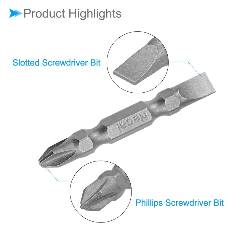 CoCud Phillips-Slotted Double Ended Screwdriver Bit, 50mm Long PH2/SL6 1/4 Inch Hex Shank, S2 Magnetic - (Applications: for Power Tool), 5-Pieces