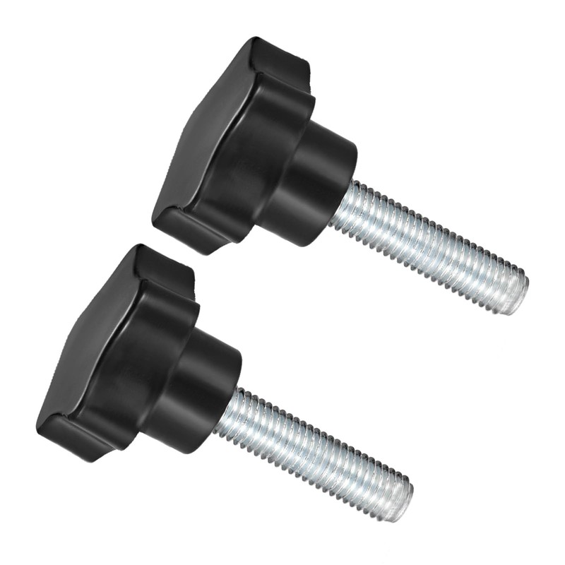 --- The unique star-shap plastic knobs offer an ergonomic and comfortable grip, even with gloves, wet or greasy hands. The clamping knob has a threaded stud that attaches to a mating component for quick and easy installation. The zinc plated metal bolt provides good oxidation and corrosion resistance, higher hardness, more wear resistance, and smooth surface. Made from thermoset plastic for long-lasting performance and wear resistance. The tightly-in plated steel metal insert hand screws allow adjustment without additional tools. The thumb screws provide an easy-to-use and reliable way to make optimal control for adjusting and tightening components.