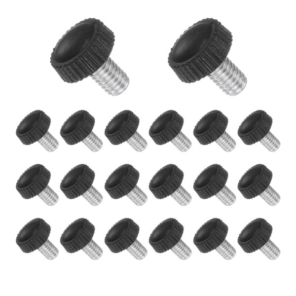CoCud Thumb Screw Knurled Knobs, M6 x 9mm Male Thread, Black Round Head Clamping Screw Threaded Stud Hand Knobs Grip, (Applications: for Machinery Lathes), 20-Pieces