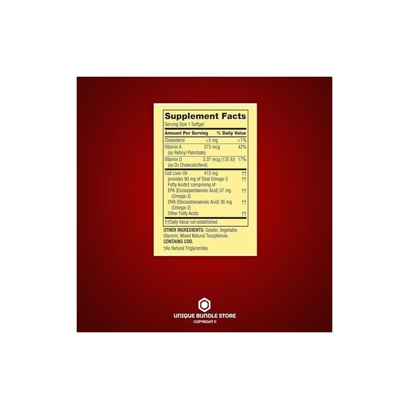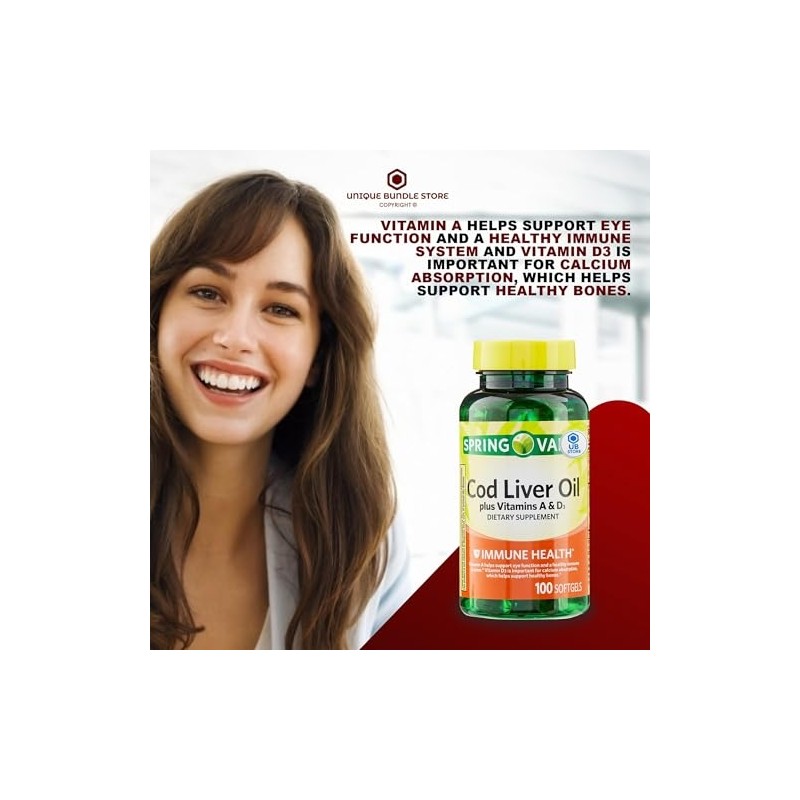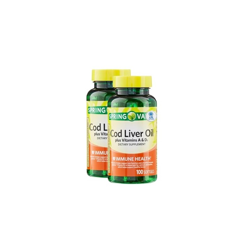 Cod Liver Oil Plus Vitamins A & D3, 100 Softgels - Dietary Supplement + UB Store Sticker (Pack of 2)