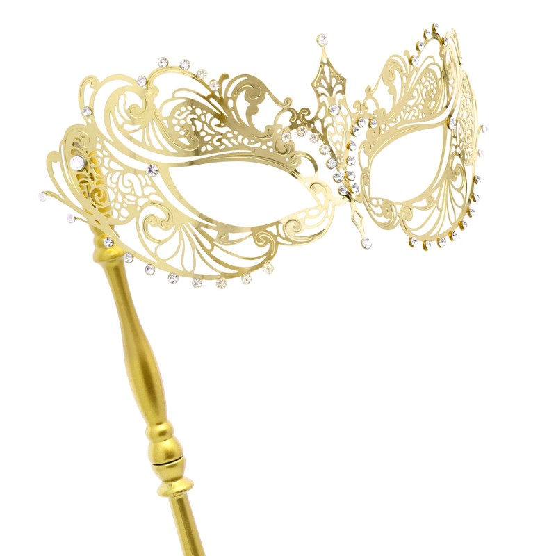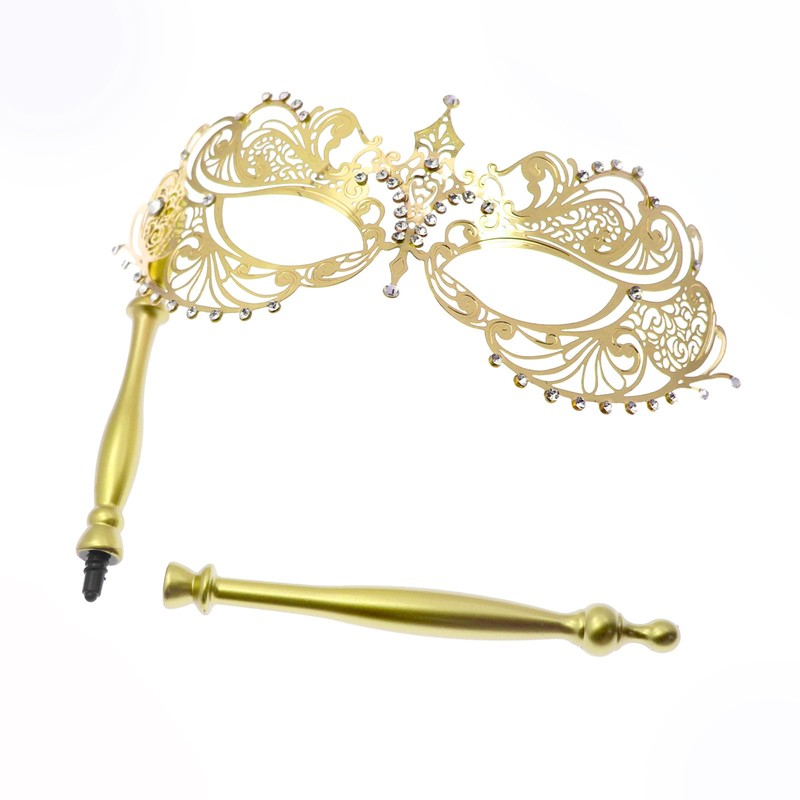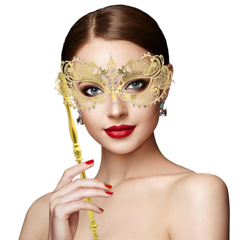 - 【Elegant Design】 The masquerade mask with stick is made of ABS base inlaid metal and sparkling rhinestones, charming line design, beautiful paint pattern and bright diamante crystal detailing, luxury style with Sparkling and eye-catching.