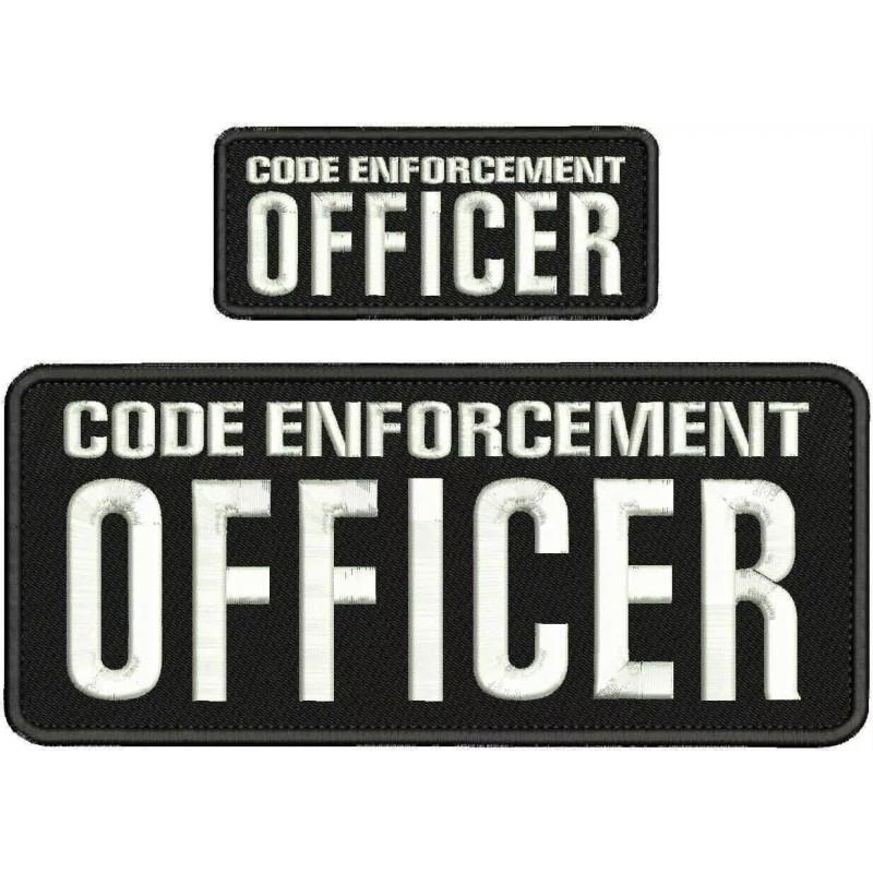 CODE ENFORCEMENT OFFICER EMB PATCH 4X10 AND 2X5 HOOK ON BACK White ON BLACK