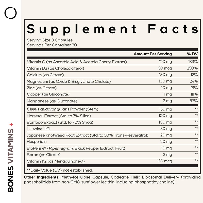 - Botanical Ingredients: This bones supplement and D3 K2 vitamin formula features bamboo extract, horsetail extract, cissus quadrangularis powder, and Japanese knotweed root extract (standardized to 50% trans-resveratrol).