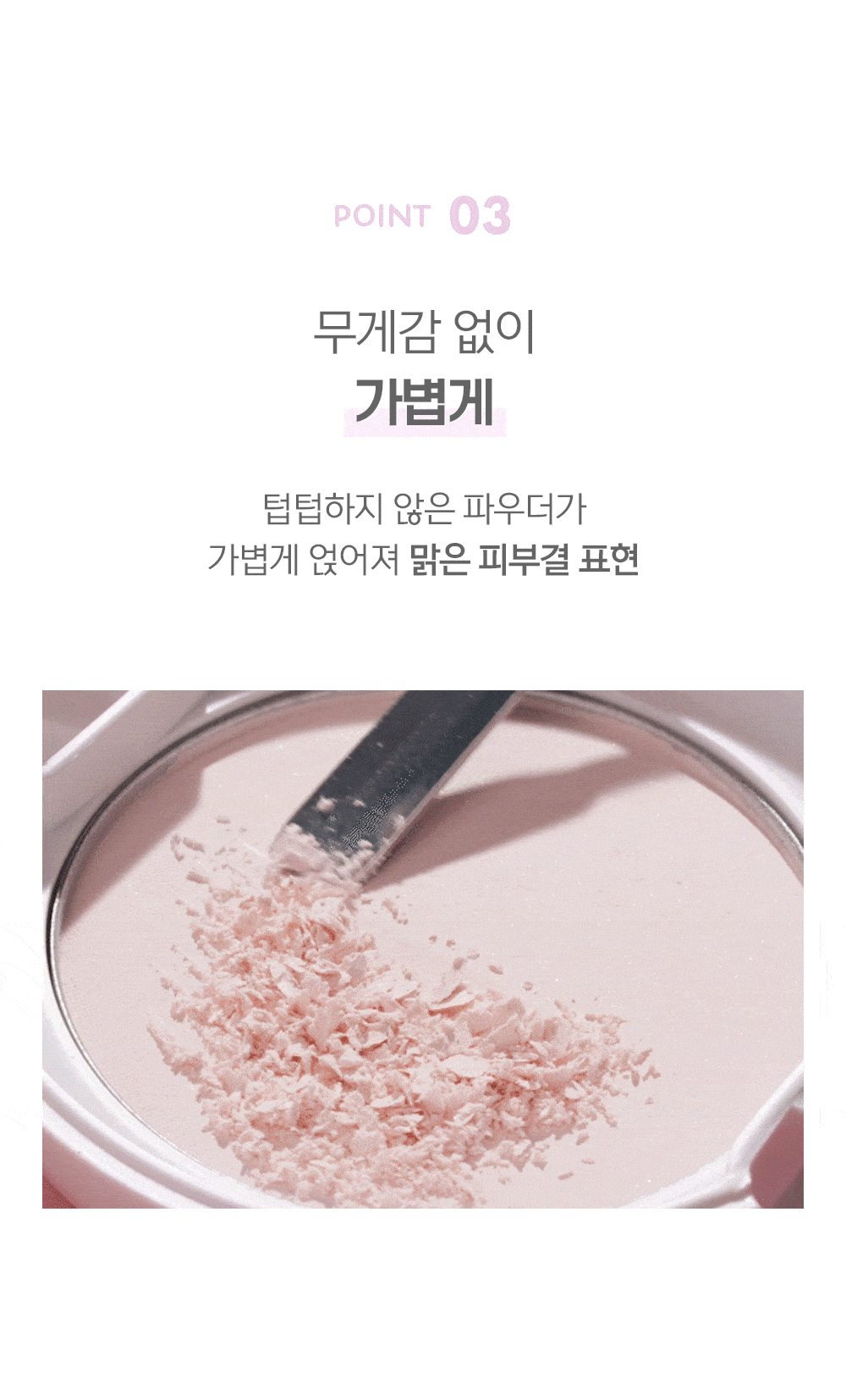 | How to Use | Take an appropriate amount with the built-in puff and lightly tap on areas that need shine. |