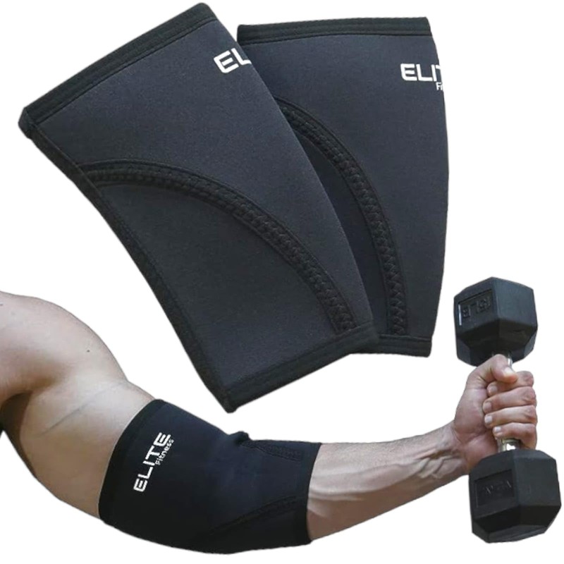 Coderas Deportivas de 5mm (PAR) - Soporte para Codos, Coderas de compresión, Ideal para Levantamiento de Pesas, Gimnasio, y Crossfit, Material Duradero y Elastico para Mayor Comodidad… (Grande)