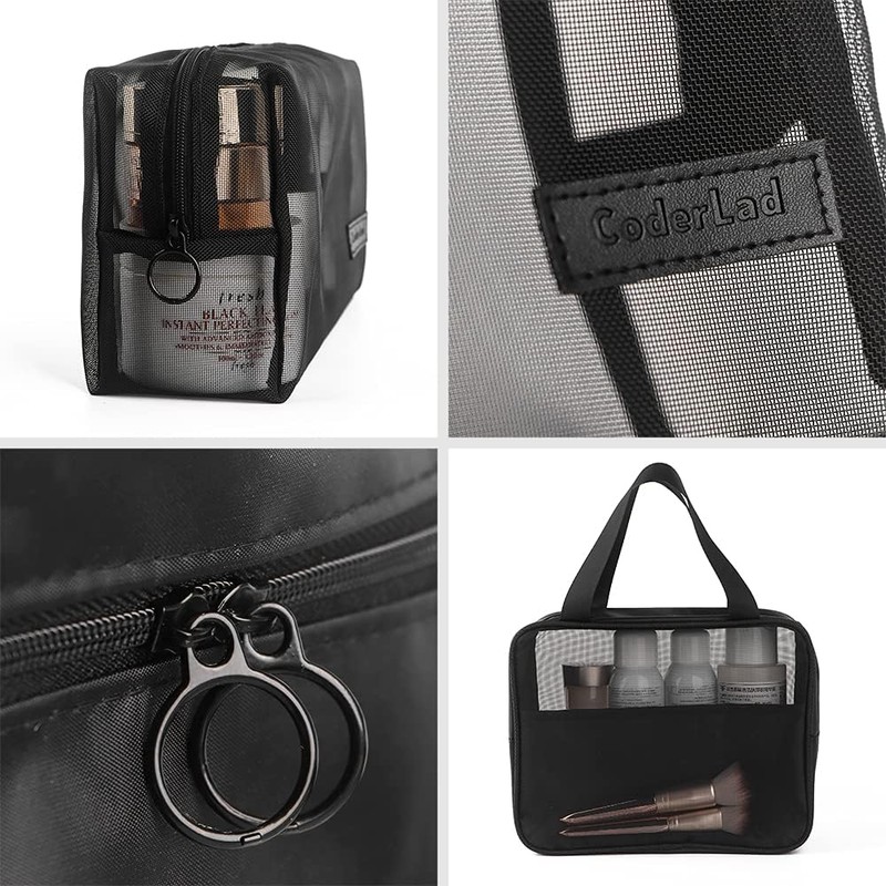 CoderLad - Bolsa de cosméticos portátil para organizar cosméticos y artículos pequeños para baño de negocios, viajes, unisex (negro 3/4 piezas), Negro -, Bolsa de cosméticos rectangular con cierre