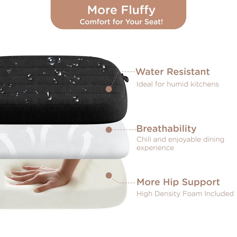 - Dual-Layer Comfort: Cushions features a dual-layer padding made of resilient foam and PP cotton, offering softness while providing excellent support. The breathable, water resistance fabric ensures your cushion stays dry, even in a humid kitchen, making every dining experience delightful.