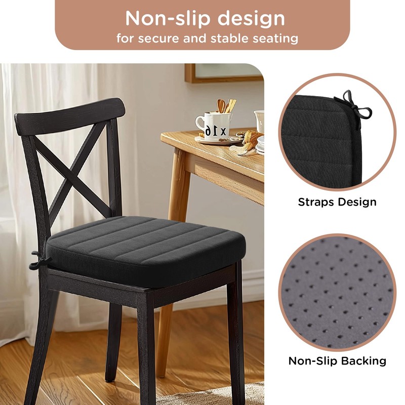 - Secure and Snug Fit with Practical Design: Our pad is equipped with attached ties and a non-slip back, ensuring a secure and perfect fit for your dining chairs. Enjoy the convenience of a cushion that stays in place, providing a snug and comfortable seating experience every time.