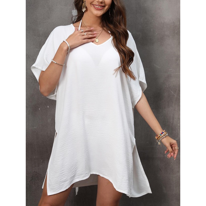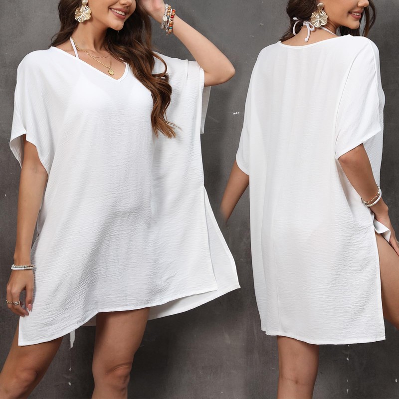 - 【Bikini Cover Up With V Neck】: This is a V-neck beach dress. The V-neck design can change the face and neck lines, making you look slimmer and show off your sexy collarbone better. The side slit can show the curves of the legs and add charm to you, the edge is neatly sewn, very exquisite.