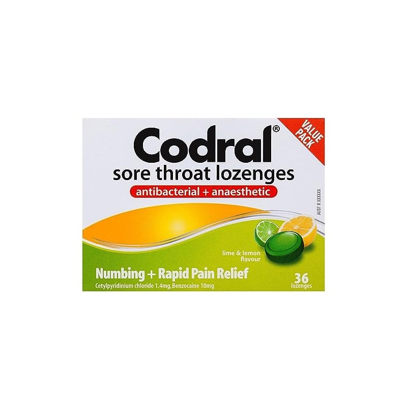 CODRAL Sore Throat Lozenges Lime & Lemon, 36 count, Pack of 36