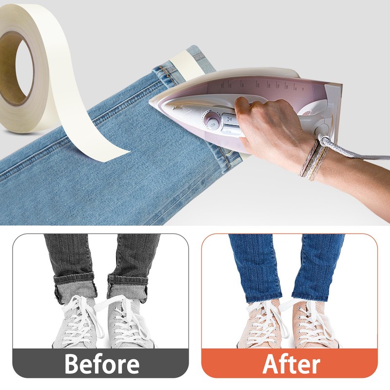 - Wide Application: The no sew hemming tape can be used for fabrics such as pants, jeans, skirts, clothes, pillow cases, curtains, home, DIY art, crafts and more to provide a lasting sticky.