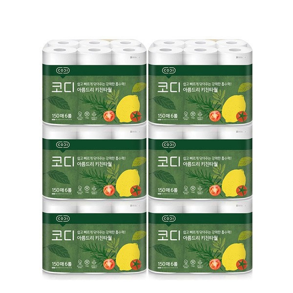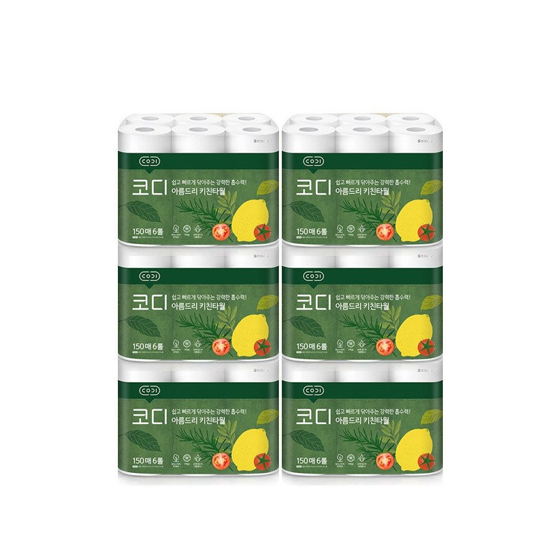 Cody Areumdri Kitchen Towels 150 sheets, 6 rolls / 코디 아름드리 키친타올 150매 6롤 6개